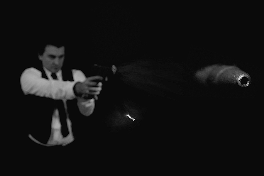 Jest to autoportret złożony z 3 osobnych fotografii, postaci, łuski i prawdziwego pocisku którego zdobycie tu gdzie mieszkam było bardzo trudne. Kombinowałem jak najlepiej ułożyć trajektorię lotu kuli co nie jest wcale takie proste ale dziękuję za opinie każda się liczy pozdrawiam ;-)
